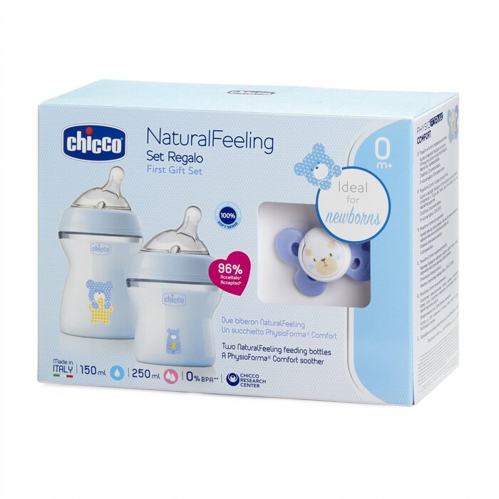 – 1 Biberón Natural Feeling 250 ml. Flujo regulable y tetina inclinada.
