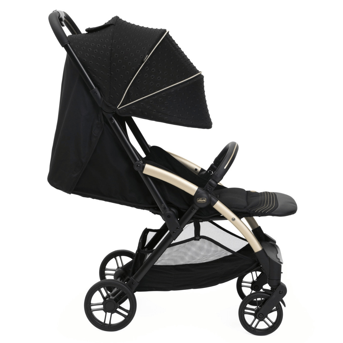 ACOGEDOR: Asiento amplio, acolchado y cómodo. Capota extensible y equipada con una ventana de malla para mantener el contacto visual con el bebé. Protección UV50+ y WR.